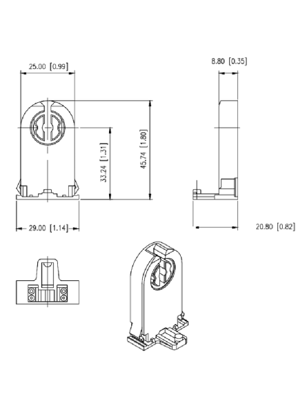 * Fluorescent bi-pin socket, long model, snap-in mounting with lock system