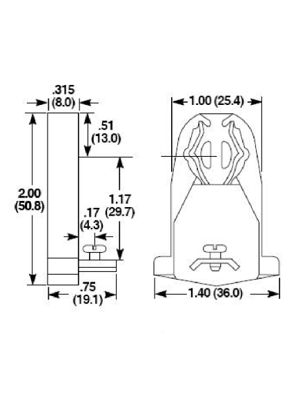 * Fluorescent bi-pin socket, long model, screw mounting on metal bracket